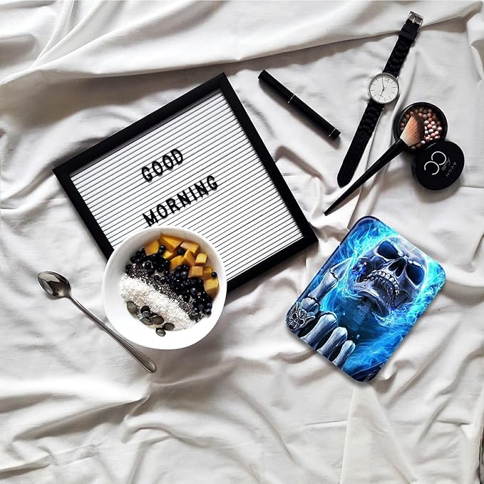 Blue Flame Skull Fingers Folding Travel Mirror Vanity Mirror PU Leather Portable Adjustable Rectangular Ultrathin Makeup Mirror,for Travel, Camping,Home