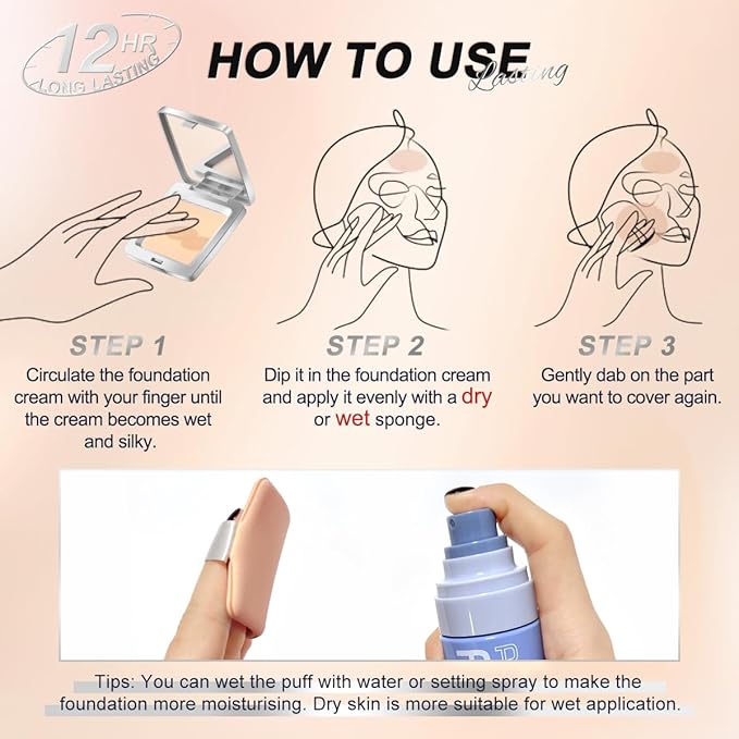 - Recommended Uses For Product : For wet application, wet sponge and squeeze out the excess water, then tab the sponge with the cover foundation cream and spread evenly through on face. For dry application, apply with dry sponge, then tab the sponge with the cover foundation cream ,spread evenly through on face. For wet application, wet sponge and squeeze out the excess water, then tab the sponge with the cover foundation cream and spread evenly through on face. For dry application, apply with dry sponge, then tab the sponge with⦠See more