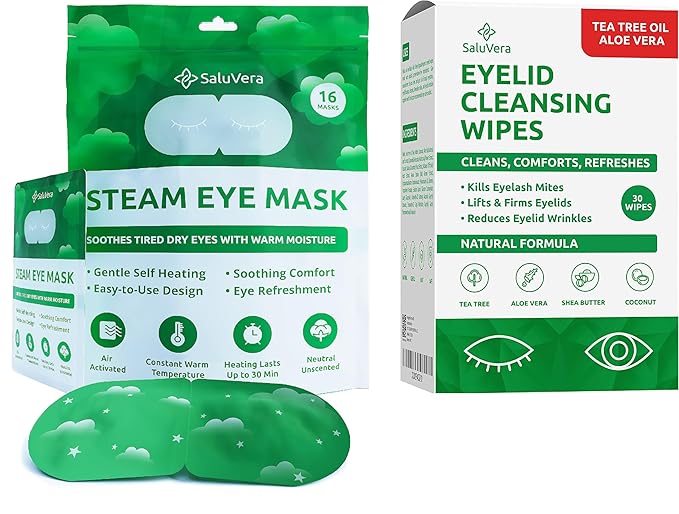 - Complete Eye Care Solution: Experience ultimate eye care with our bundle featuring Eyelid Wipes with Tea Tree and Aloe Vera for cleansing and soothing, paired with Self-Heating Steam Eye Masks for relaxation and revitalization. Perfect for dry, itchy eyes and daily comfort