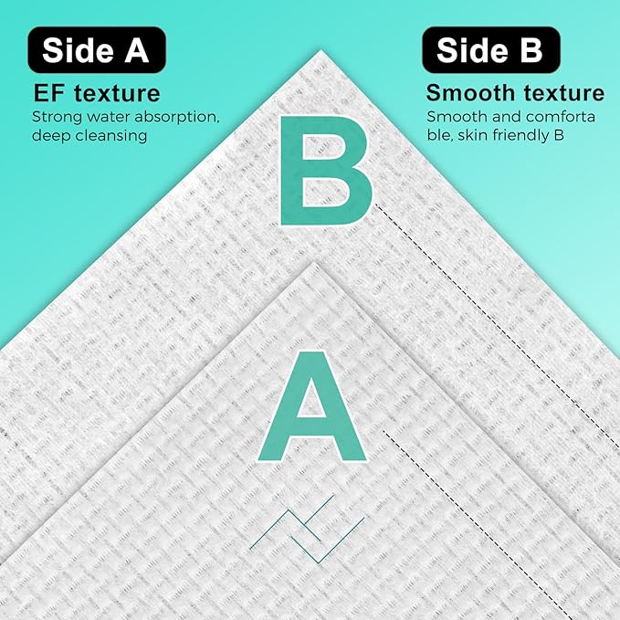 - EXTRA THICK & SOFT FACE TOWELS: The face towelettes disposable are 10" x 12", 50% thicker than other facial towels.Our face towels are double-sided, with a smooth surface on one side for gentle skin cleansing and a grid-textured surface on the other side for deep cleansing, effectively removing surface stains and allowing the skin to breathe freely.