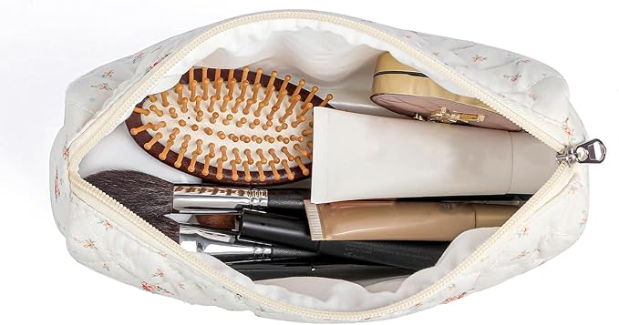 Makeup Bag Travel Cosmetic Bag for Women Girls, Zipper Make Up Pouch, Floral Flowers Toiletry Organizer Makeup, Portable Storage Cosmetic Travel Cloth Bag (2 Pack (L+S)/White Small Flower)