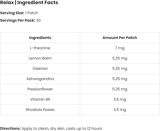 Relax Patch | L-Theanine, Lemon Balm, Valerian, Ashwagandha, Passionflower | 30 Patches