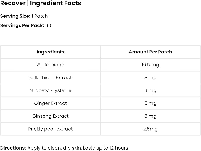 Recover Patch | Glutathione, Milk Thistle, NAC, Ginger, Ginseng & Prickly Pear | 30 Patches