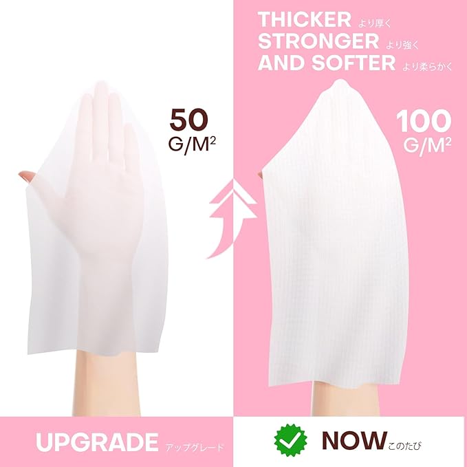 - 【THICKER & CLEAN】Individually wrapped to keep clean and easy to carry on the go. Face wipes with 100g/m² EF-weave cotton much thicker but softer and gentler, you need to put a lot a force on it to tear face towel for washing face. cotton tissue size 30 x 23cm(12" x 9"). Face cloths can be reused up to 10 times.