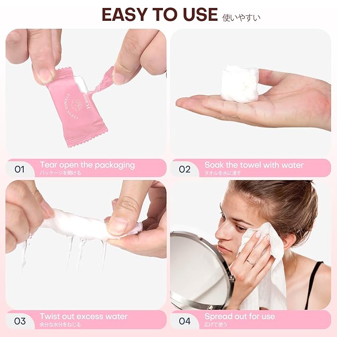 - 【EASY OF USE】You can add a small amount of water or makeup remover to open the towel. Clean skin wipes can be used to dry the face or combined with your choice add different liquid products. Super absorbent, great for removing makeup, removing impurities, oil and makeup from the skin, while also removing dirt, sweat and sunscreen. After washing face, the mini compressed towels can be reused on refrigerator cleaning, kitchen cleaning, glass cleaning, furniture cleaning, etc.
