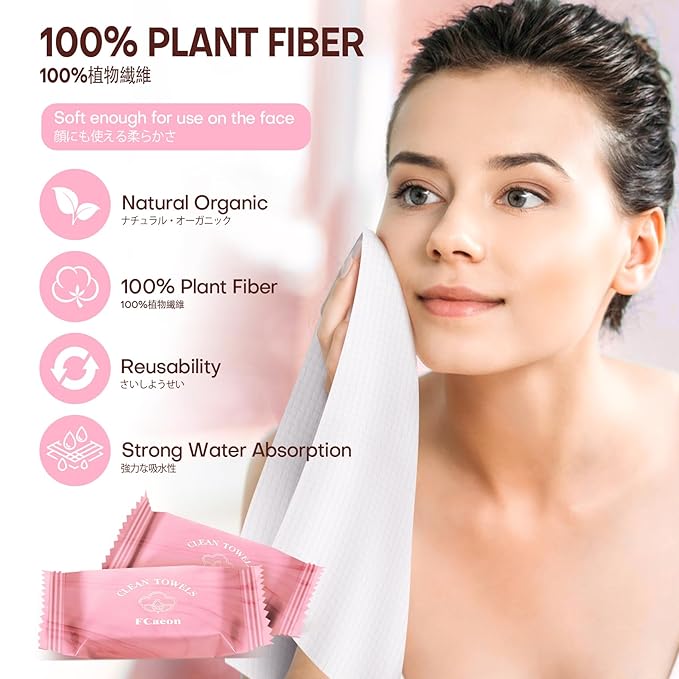 - 【100% PLANT FIBER SKIN FRIENDLY】FCaeon Compressed Towel tablets is made of 100% Plant Fiber. Biodegradable Facial Towel is easier to clean sensitive and fragile skin, and disposable face cloths have no residue on the skin.disposable towels for face do not contain chemicals and unnecessary additives.