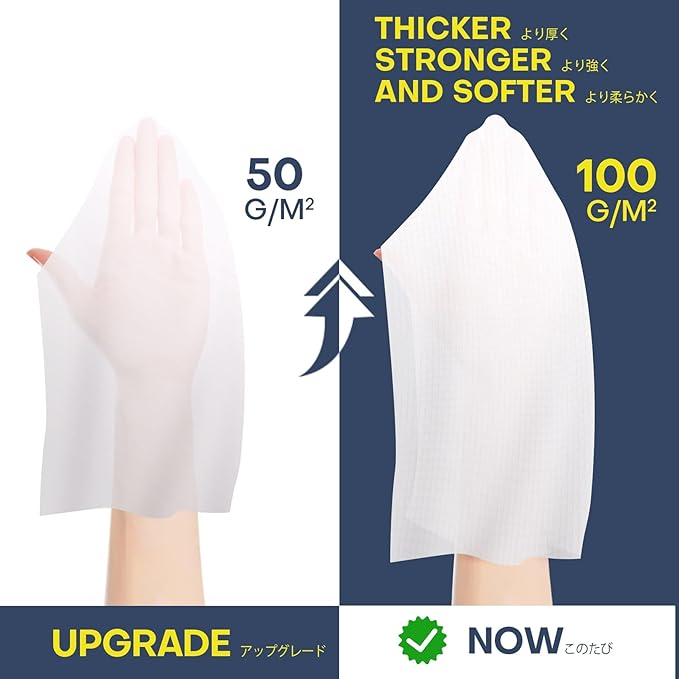 - 【THICKER & CLEAN】Individually wrapped to keep clean and easy to carry on the go. Face wipes with 100g/m² EF-weave cotton much thicker but softer and gentler, you need to put a lot a force on it to tear face towel for washing face. cotton tissue size 30 x 23cm(12" x 9"). Face cloths can be reused up to 10 times.