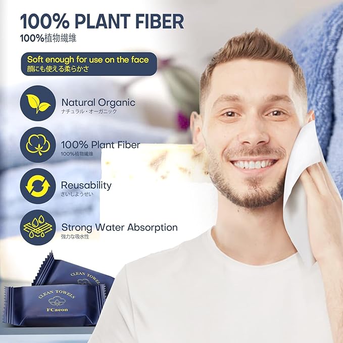 - 【100% PLANT FIBER SKIN FRIENDLY】FCaeon Compressed Towel tablets is made of 100% Plant Fiber. Biodegradable Facial Towel is easier to clean sensitive and fragile skin, and disposable face cloths have no residue on the skin.disposable towels for face do not contain chemicals and unnecessary additives.