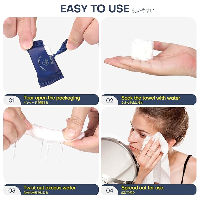 - 【EASY OF USE】You can add a small amount of water or makeup remover to open the towel. Clean skin wipes can be used to dry the face or combined with your choice add different liquid products. Super absorbent, great for removing makeup, removing impurities, oil and makeup from the skin, while also removing dirt, sweat and sunscreen. After washing face, the mini compressed towels can be reused on refrigerator cleaning, kitchen cleaning, glass cleaning, furniture cleaning, etc.