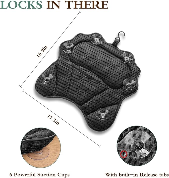 • 💖【A truly ergonomic bath pillow】ergonomic custome designed headrest brings head and neck max. comfort and relaxation. Extra thick shoulder and back padding brings shoulder and back max. support and relaxaion.Fits all Bathtub, Spa Tub, Hot Jacuzzi.