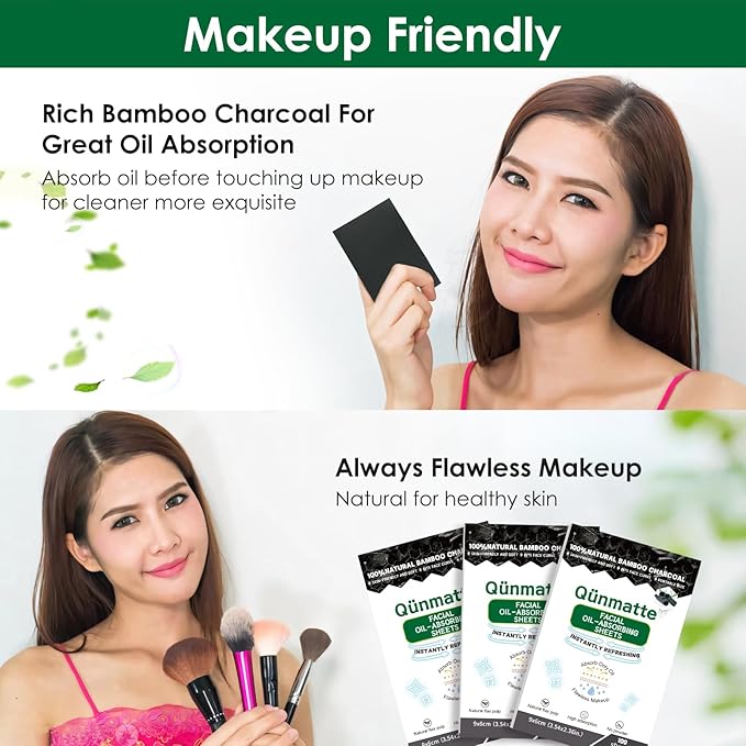 Blotting Paper for Oily Skin,Makeup Oil Absorbing Sheets for Face, Natural Bamboo Charcoal Individual Premium Oily Face Oil Control Paper