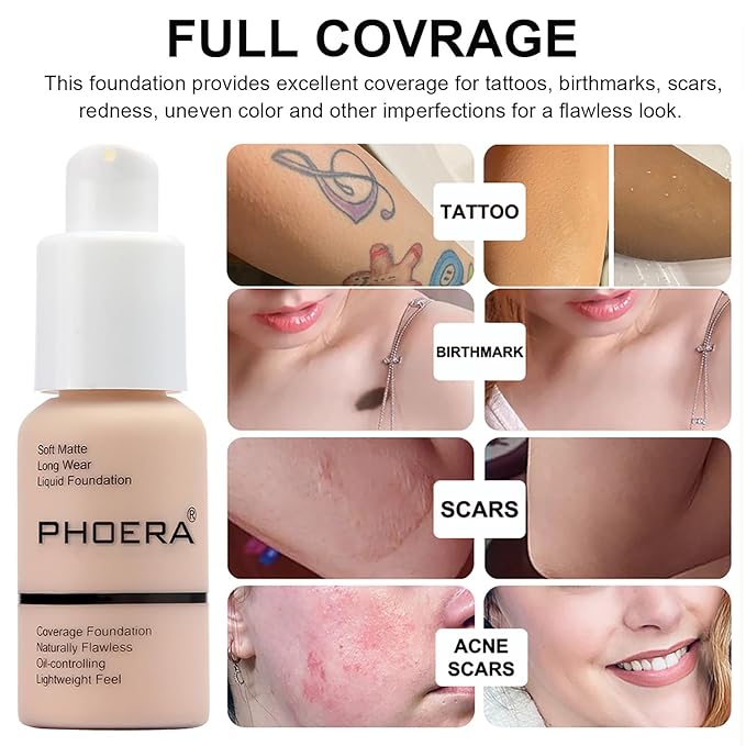- LIQUID FOUNDATION SET : This flawless foundation has a lightweight, creamy texture with medium coverage. It blends easily into the skin to help improve uneven skin tone, cover pores, concealer and control oil. Gives you a fresh, natural matte finish.