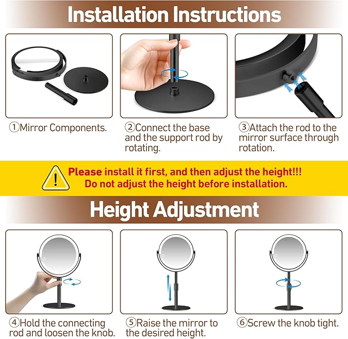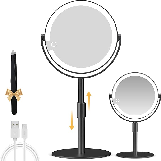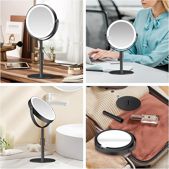 • Professional 3-in-1 Lighted Makeup Mirror: Engineered with an 8-inch HD magnifying mirror and high-quality aluminum alloy , this dual-sided 1X/20X mirror with light features a 360Β° swivel design and 13.5"-16.5" height adjustment. Ideal as a desk mirror for eyeliner detailing, bathroom contouring, and office touch-ups. Industrial-grade pivot joints (300% stronger than plastic) ensure durability.
