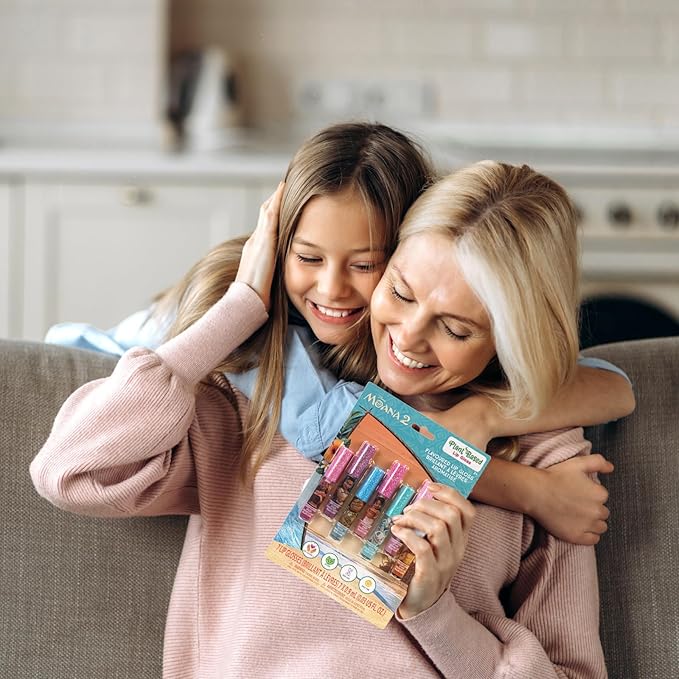- This Moana 2 lip gloss set is perfect for the little voyager in your life, who just wants a bit of sparkle and adventure. With 7 different flavors to choose from your child will never get bored. What girl doesnβt love lip gloss that comes in all sorts of pretty and fun colors and scents? Not only do our lip glosses look and smell deliciously magical, but theyβre made with naturally derived ingredients, so Mom definitely will love these as much as her little one does!