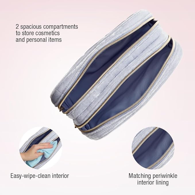 Conair Women's Double Zip Toiletry Travel Bag-Makeup Organizer-Gifts for her, Frosty Blue, 1 Count (Pack of 1)