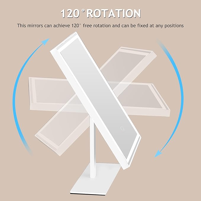 • 【Sturdy bracket and 120° rotation】The Mimirchi desktop lighted mirror adopts a stable rectangular bracket to provide stability and support. It ensures that the mirror is firmly in place when in use. In addition, the 120° rotation function can adjust the angle well, allowing you to make up beautifully.