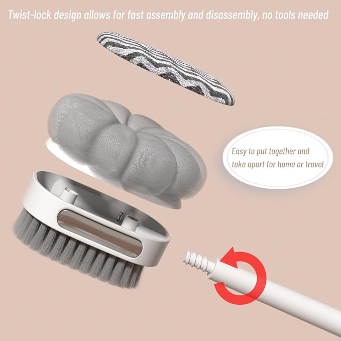 - Detachable Long Handle – Easy to Use, Easy to Pack Switch between full-body reach and handheld control. Ideal for back scrubbing at home or compact dry brushing on the go.