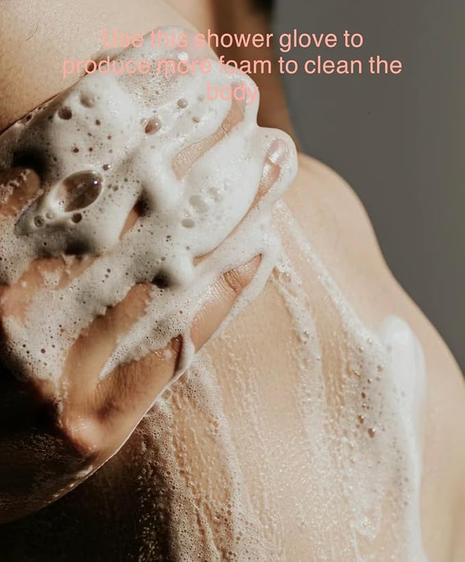- Usage: First wet the gloves, pour shower gel (soap coating) onto the top during bathing, wash the whole body thoroughly, massage and exfoliate at the same time, very comfortable.