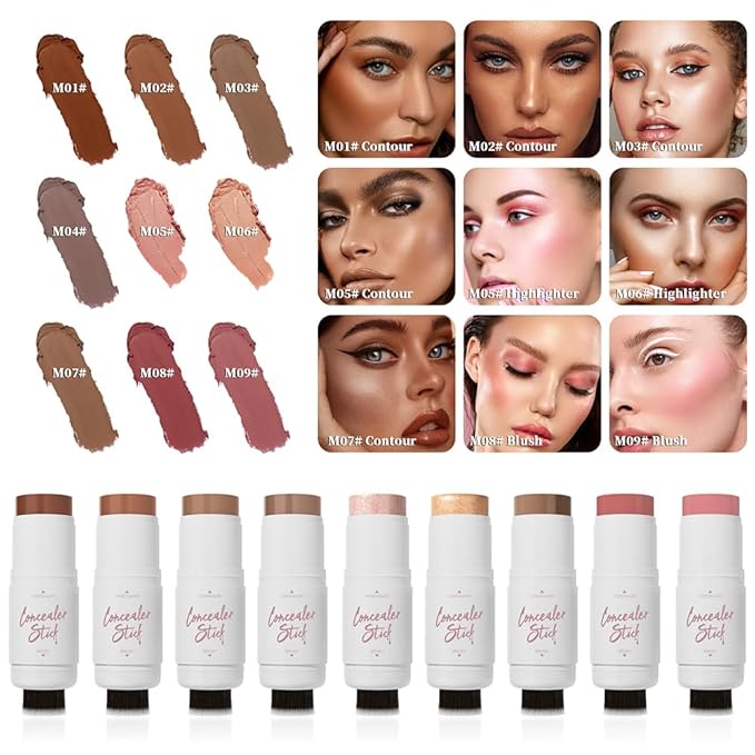 - Multi Purpose Face Stick: Lightweight, non-greasy cream contouring sticks are easy to apply for cheeks. The unique creamy formula and colors make this soft makeup stick blend effortlessly and seamlessly into the skin. Usually used for brightening and shaping the eyes, forehead, cheeks, lips, etc.