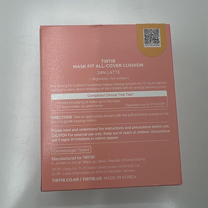 TIRTIR Mask Fit All Cover Pink Cushion Foundation | High coverage, Velvety Matte Finish, Lightweight, Flawless, Corrects Redness, Korean Cushion (#24N Latte, Full Size, 0.63 Fl Oz)