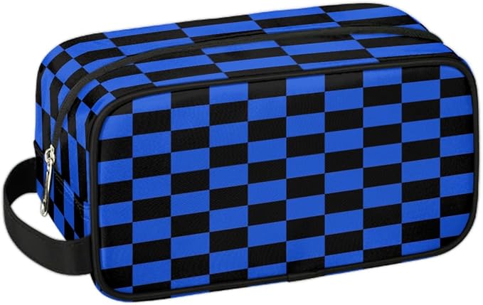 - 【Large Capacity Hanging Toiletry Bag】The black blue checkerboard makeup bag for boys mens has a large main zipper compartment for storing all other small items needed,such as cosmetics,razors,travel toiletries,etc;The outer layer has a zippered small pocket suitable for storing cash,cards,passports,phones,snacks,and other small items that can be conveniently carried around.