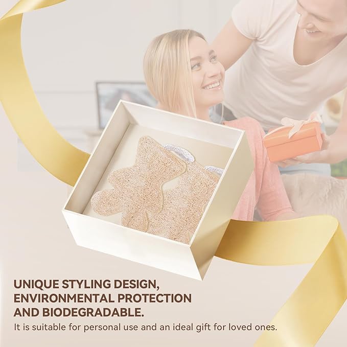 Bear Shaped Nature Loofah Sponge - Premium Body Wash Sponge - Exfoliating Body Scrubber for Shower - Bath Loofah Nature for Silky Smooth Skin - Loofah Pack for Holiday(Pack of 2)