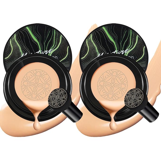 2Pcs Air Cushion CC Cream Foundation Mushroom Head Moisture Cushion Cover Up BB Cream Makeup for Moisturizing Oil Control Concealer Brighten Skin Tone #Natural Color