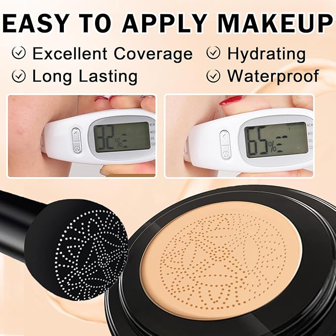 - 【Packing in Box】The liquid foundation and mushroom-shaped puff are packed in cardboard box which is exquisitely designed, suitable for use in daily life, work, outdoor sports, or as a gift for family, friends and colleagues