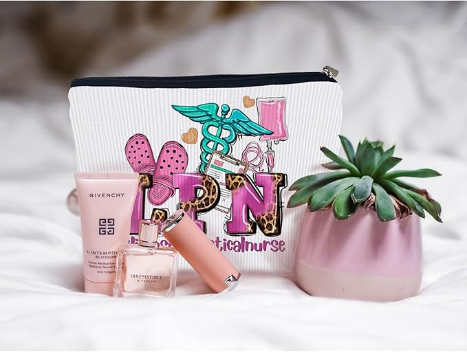 Ayxvt LPN Licensed Practical Nurse Corduroy Cosmetic Bag,Retro Gorgeous Pink Leopard Clipart Decorative Makeup Bag Zipper Pouch Toiletry,Nurse's Day Nurse Graduation Gifts for Women Girls(CorduroyοΌ‰