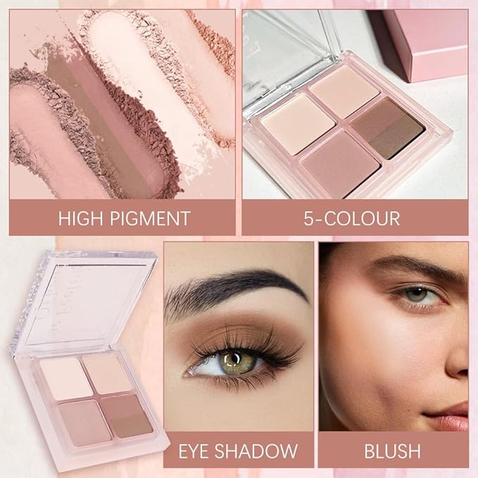 5 Colors Matte Eyeshadow Palette for Eye Makeup, Brown Eyeshadow Quads Velvety Pigmented Blendable Matte, Talc-Free