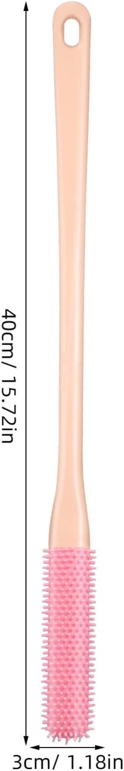FRCOLOR Toe Cleaning Brush 2Pcs Toe Seam Massage Brush for Shower 15.7 Long Handle Silicone Foot Scrubber Feet Cleaner Brush for Seniors Elderly Men Women-Pink