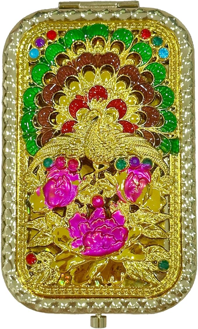 1PC Vintage Peacock Spreads Tail with Purple Flower Pattern Cosmetic Makeup Pocket Purse Magnification Jewel Mirror οΌRectangleοΌ