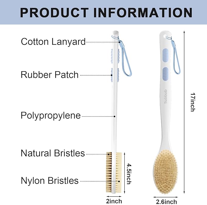 - Double-sided Bristles: One side has stiff natural bristles for dry brushing and the other side has soft nylon bristles for wet brushing