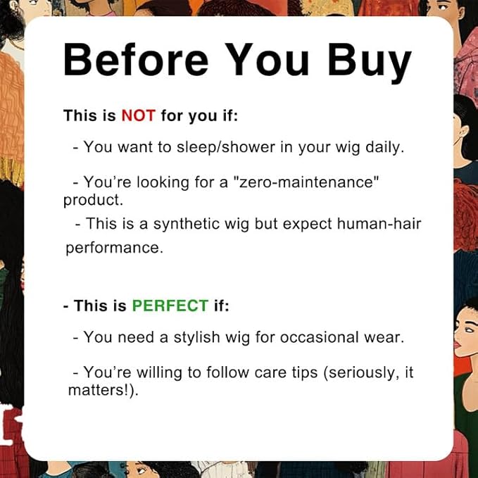 - 5.【announcements】 it’s not silk like straight wig,so taking care of it requires a little skill,If your hair is dry, it will cause tangle and shedding. Please spray some water and comb it with your finger or wide tooth comb, if you really mind the tangle,pls order considered
