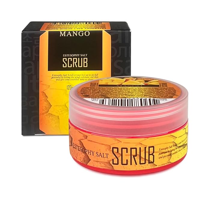 Estesophy Salt Scrub_Mango_Korean Salt Body Scrub, Salt Massge, Salt Soap, Body Care, Mango Salt Shower 4.2oz (120g)