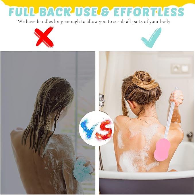 - Creates Rich Foam for Smoother Skin: these long handled sponge for shower create a rich foam for effective cleansing of your back, legs, buttocks, feet, and others; The outcome leaves your skin smoother and more refreshed after each shower, indeed an essential body cleaning tool for your everyday use