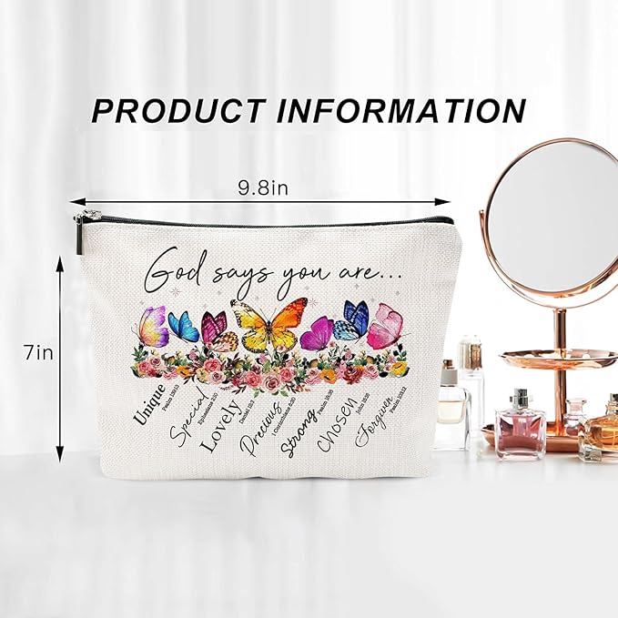 God Says You Are...Christian Gift for Women Inspirational Bible Verse Cosmetic Bags with Zipper Motivational Religious Travel Pouch for Women, Mother, Sister