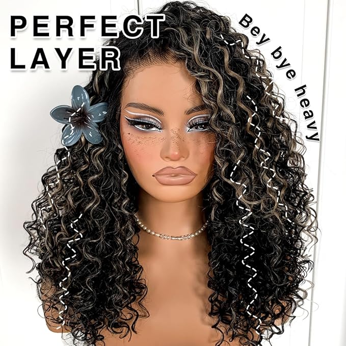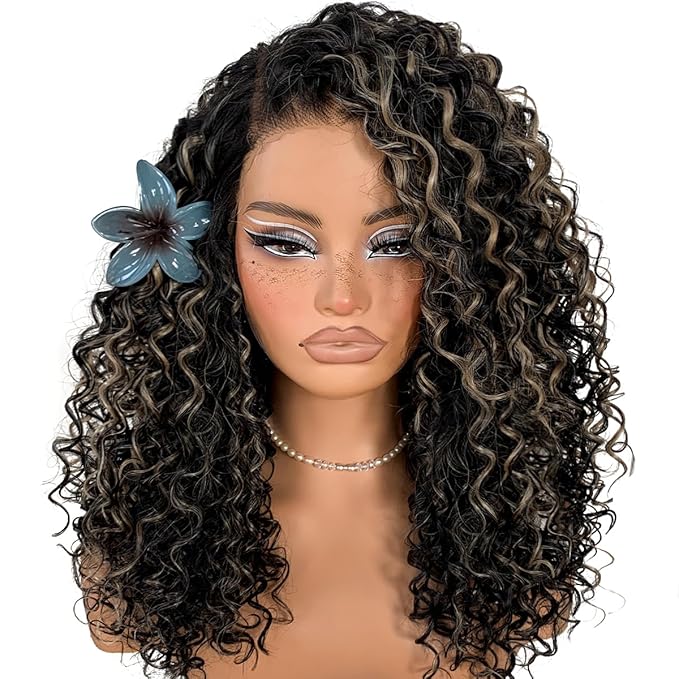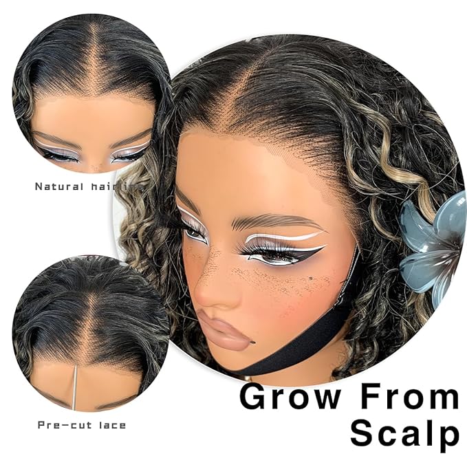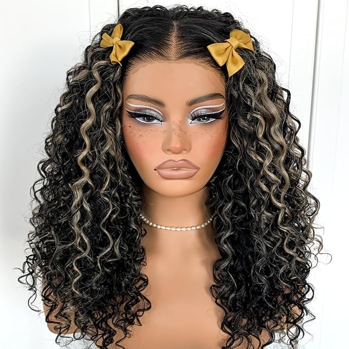 Highlights Lace Front Curly Wig Pre-Plucked Wear And Go Glueless Wig Black And White HD Lace Afro Wig Kinky Curly Wig