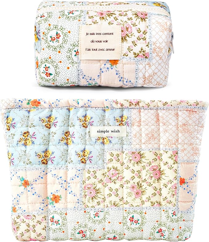 • Premium and Soft Cotton: Made from premium thick cotton material, this quilted makeup bag boasts a soft, durable texture that's gentle on your hands yet tough enough to endure daily use. easy to clean, lightweight. Unique aesthetics floral patterns, neat stitches and smooth zipper is not easily deformed, ensuring long-lasting use(Machine washable)