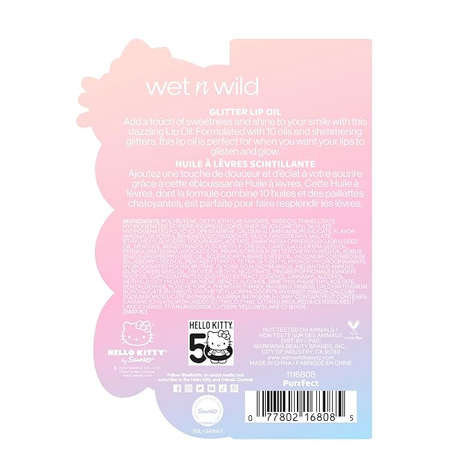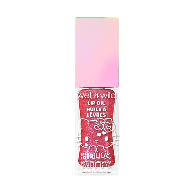 wet n wild Hello Kitty Glitter Lip Oil, New 10 Oil Infused Formula, Warm Apple Pie Lightly Scented, Sparkly Bold Colors, Cruelty-Free & Vegan - Purrfect