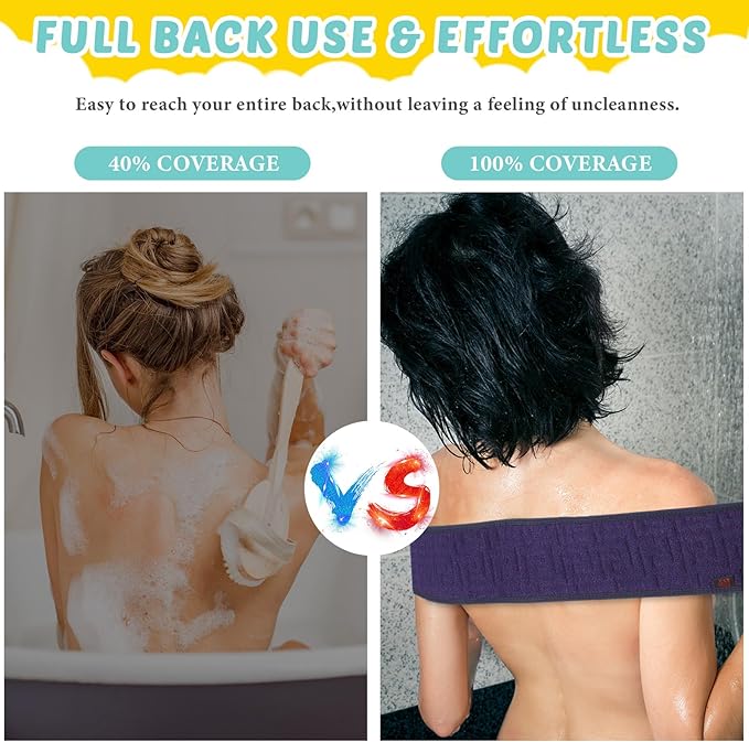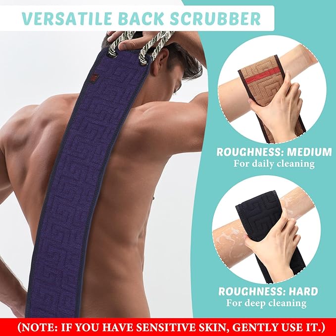 - What You Get: you will receive 4 pieces of Double-sided exfoliating back scrubber in different colors, Navy, yellow, brown, purple, If you have sensitive skin, you need to use it gently; (Note: please wash it before FIRST use; )
