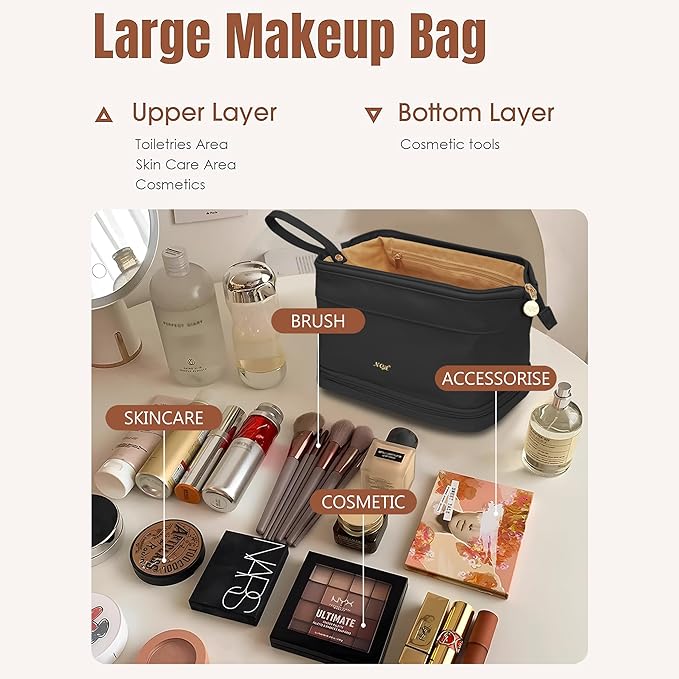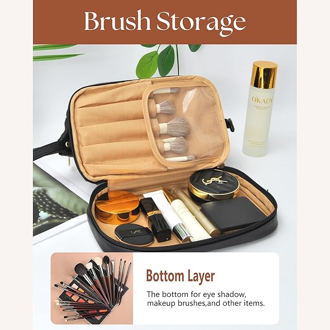 - UNIQUE DESIGN: This bag features two storage sections, with the bottom serving as a dedicated makeup organizer. Eyeshadows, makeup brushes, and other essentials are stored separately, keeping everything clean and tidy.