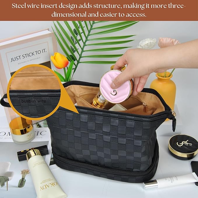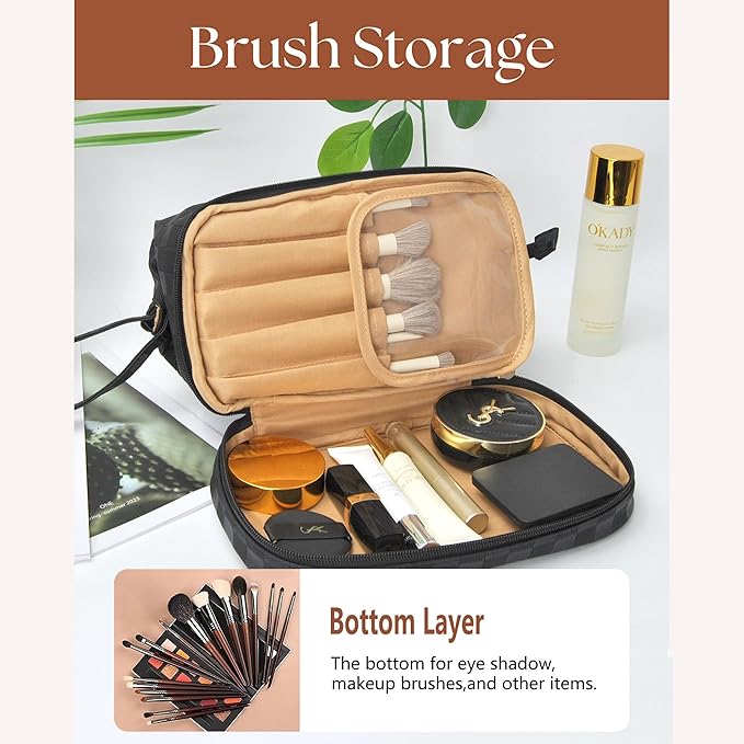 - UNIQUE DESIGN: This bag features two storage sections, with the bottom serving as a dedicated makeup organizer. Eyeshadows, makeup brushes, and other essentials are stored separately, keeping everything clean and tidy.