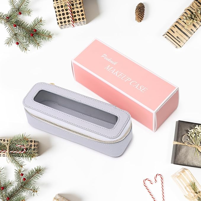 Makeup Brush Case Clear Travel Cosmetic & Toiletry Bag Slim Makeup Bag with Zipper Small Purse Organizer Car Essential Bag for Women (Gray, SLIM-3)
