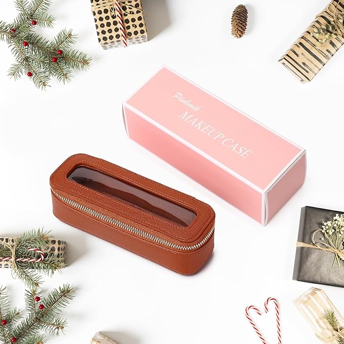 Makeup Brush Case Clear Travel Cosmetic & Toiletry Bag Slim Makeup Bag with Zipper Small Purse Organizer Car Essential Bag for Women (X/Brown, SLIM-3)