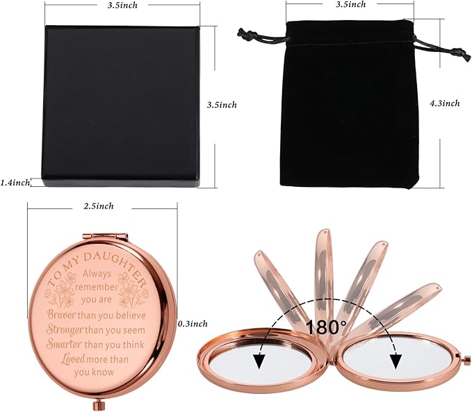 • Birthday gifts for daughter from mom dad:This pocket mirror is a meaningful way to express your support and encouragement. Every time she sees the uplifting message, she'll remember her inner strength and resilience, knowing that her family stands behind her in all her endeavors. Daughter birthday gifts, mom birthday gifts from daughter, birthday gifts for daughter, birthday gifts for daughter adult, 7 year old girl birthday gifts, 21st birthday gifts for her, 10 year old girl birthday gifts