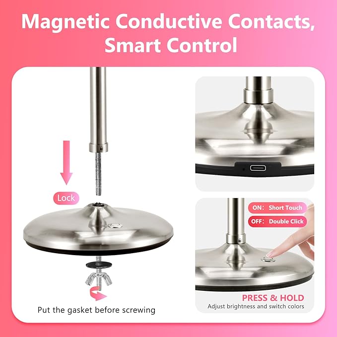 • 【Base One-Button Control】This lighted makeup mirror utilizes a brand-new technology where the mirror and the base are linked via three conductive touch points for power supply. The switch is situated on the base, preventing fingerprints on the mirror surface. You can simply touch it lightly to turn on the light and double-touch to turn it off.