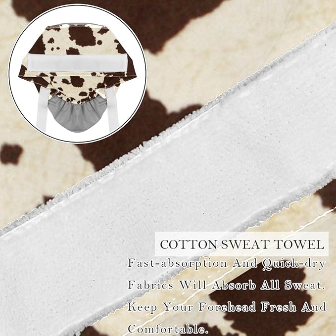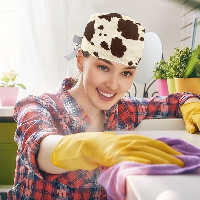 2 PCS Bouffant Cap with Button Ponytail Pouch Working Cap Sweatband Adjustable Surgical Cap Black and White Cow