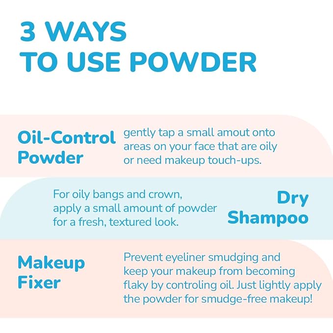 - Smooth and Flawless Finish: Formulated to blur fine lines and control oily face. This loose setting face powder delivers a seamless look while controlling shine for a great texture. It can also be used on hair to reduce greasy hair.