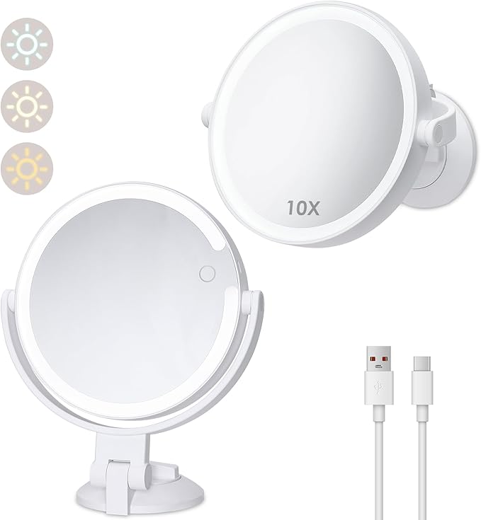 - 3 Color setting: Having the 3 color lighting feature around the whole mirror is an added benefit! The controls allow you to select white or warm light and the light is smoothly dimmable. The light is bright when you use the regular miror and the magnifying mirror. So you're able to apply makeup evenly, do personal wet shaving and trim nose hair.